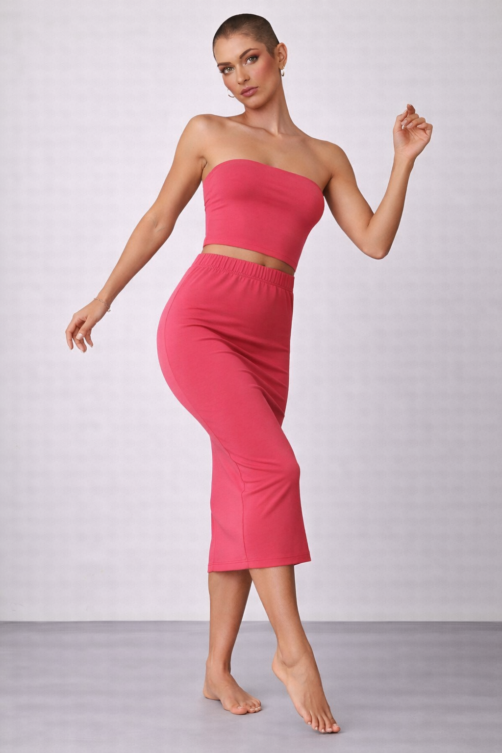 Gonna Longuette sartoriale in Jersey col. Begonia