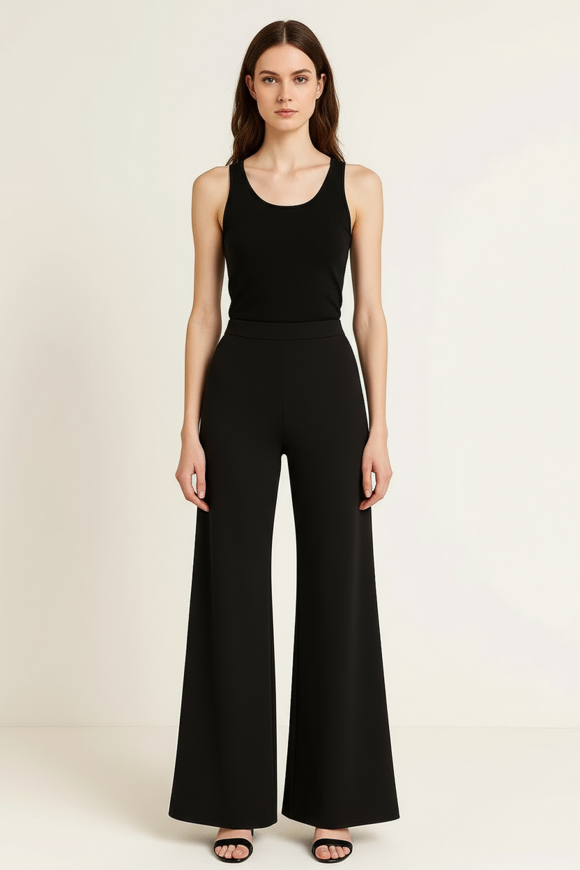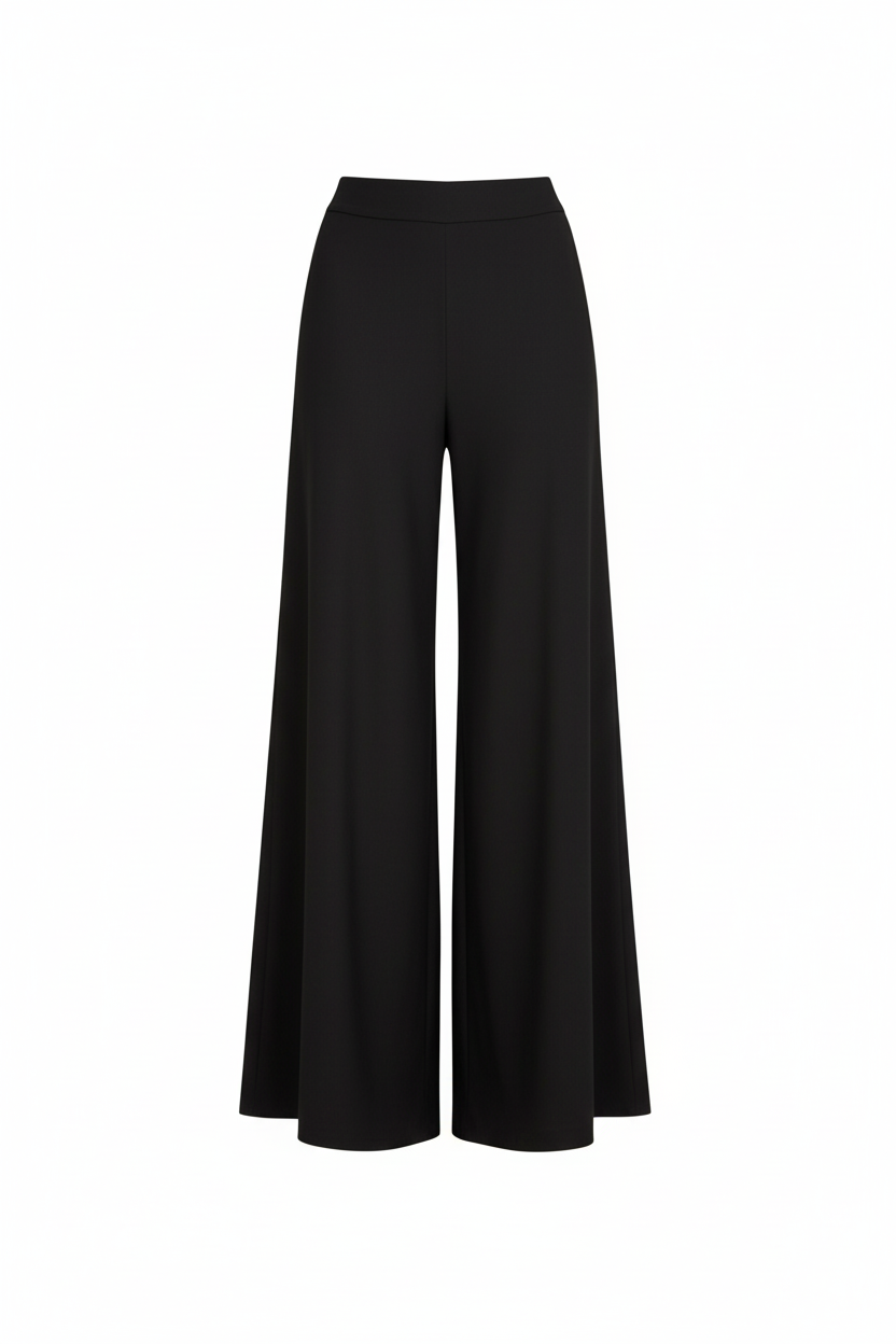L'elastico in vita e le cuciture laterali accompagnano delicatamente l'ampiezza del pantalone che scende ancora più ampio del panta palazzo rendendolo un capo unico e super elegante adatto alle occasioni speciali.