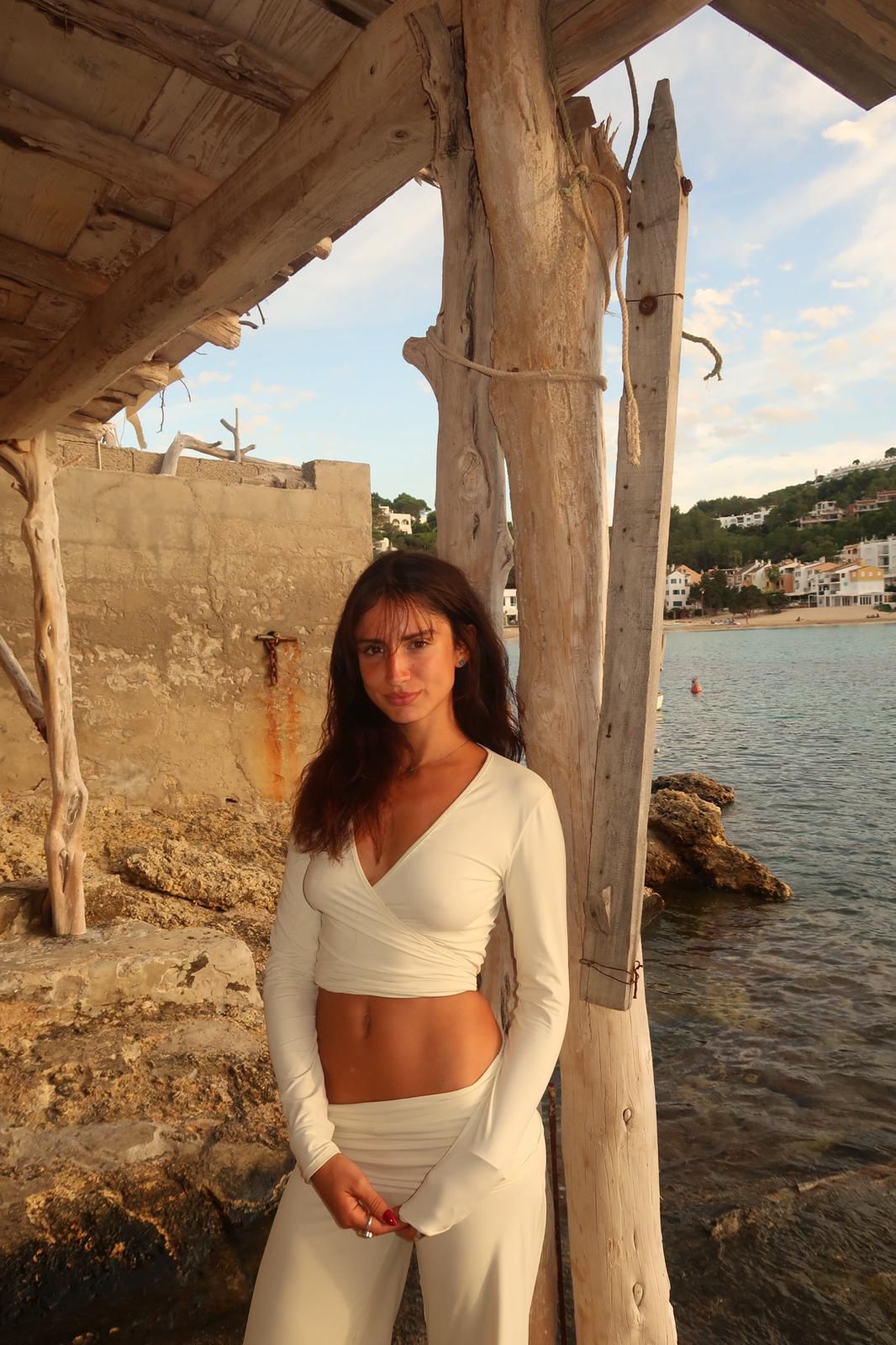 Ispirato al gesto fluido del respiro, Aria è un wrap top leggero come l’aria e morbido come un abbraccio. Sartoriale e minimalista, avvolge le spalle con naturalezza e accompagna ogni movimento con grazia, senza costringere. La lycra italiana e sostenibile dona al capo un’eleganza essenziale, perfetta per ogni momento della giornata.