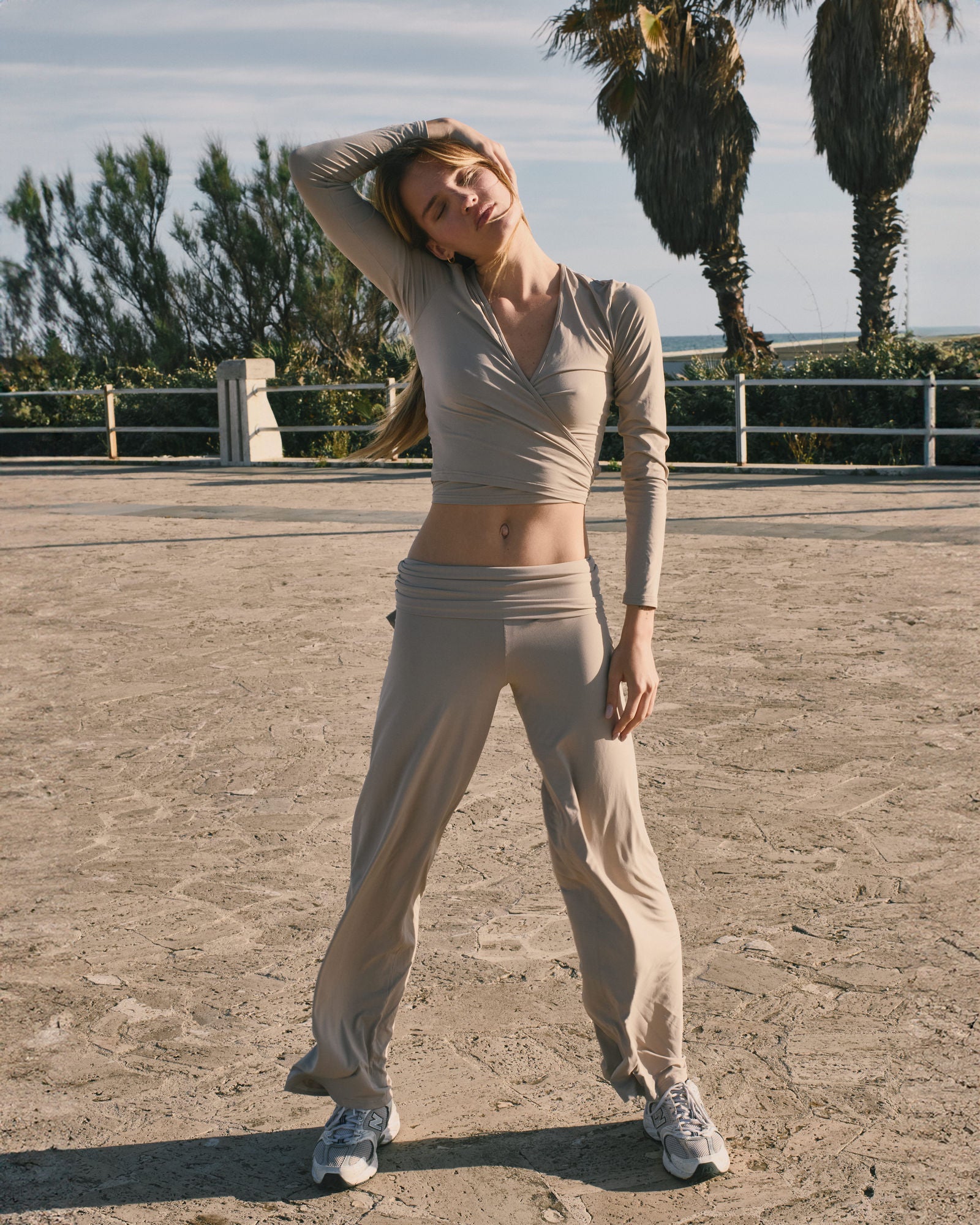 Ispirato al gesto fluido del respiro, Aria è un wrap top leggero come l’aria e morbido come un abbraccio. Sartoriale e minimalista, avvolge le spalle con naturalezza e accompagna ogni movimento con grazia, senza costringere. La lycra italiana e sostenibile dona al capo un’eleganza essenziale, perfetta per ogni momento della giornata.